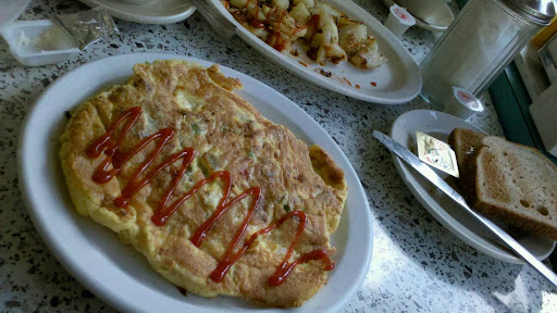 In traditional breakfast fashion, we each ordered an omelette – TasteBud A got the tomato and cheese, I got the everything omelette. We also got a side order of homefries.