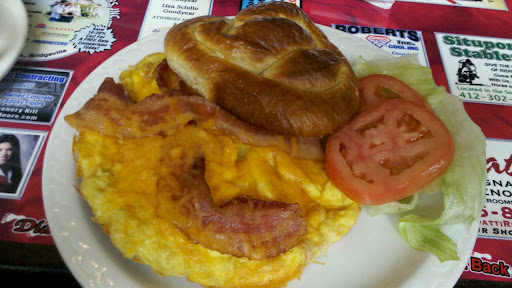 My sandwich was great. I’ve never seen a restaurant approach an egg sandwich like a hamburger, but I dig it! Served on a pretzel roll, this egg sandwich had both cheese and bacon topped with lettuce and tomato. My only comment to the waitress after eating was I wish I’d have thought to ask for a slice of raw onion to add to the sandwich. Based on the menu item names, it appears they even enjoy calling things that don’t have a sauce “Saucy,” perhaps going for irony.